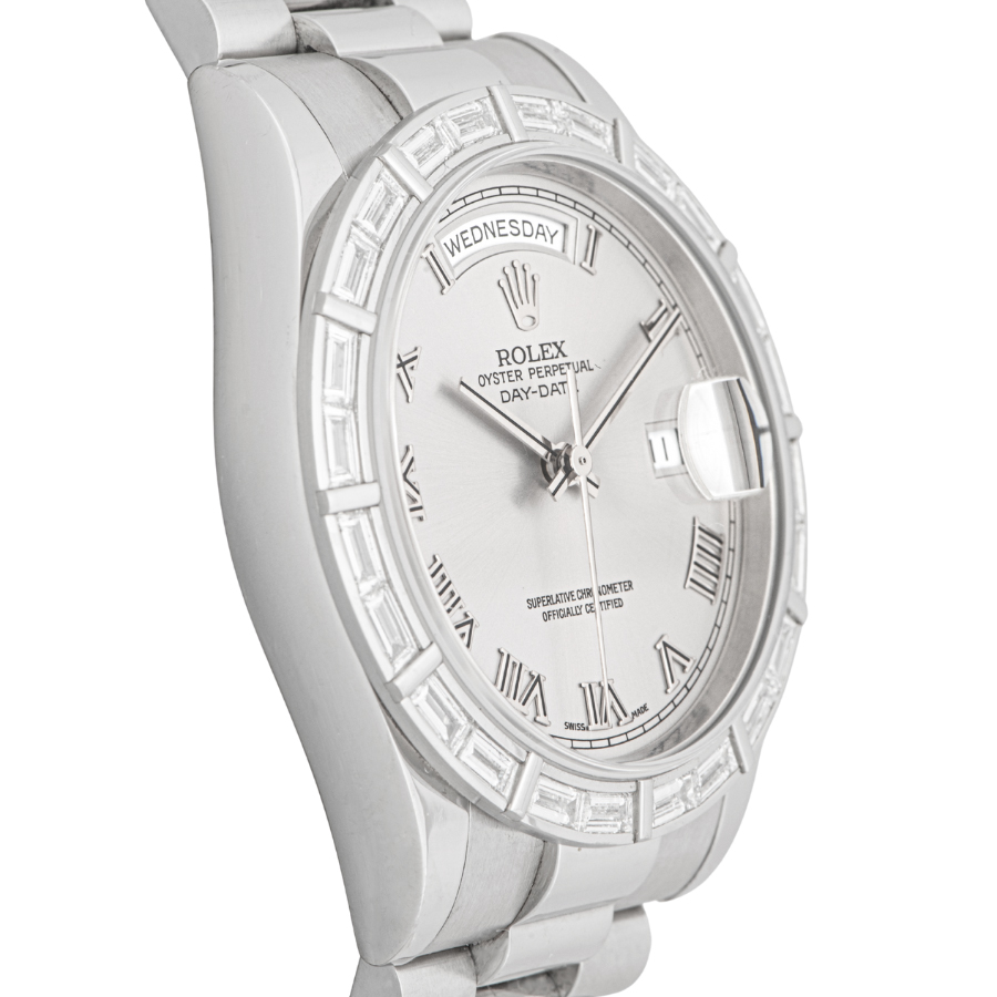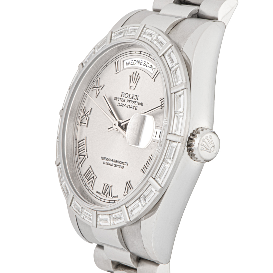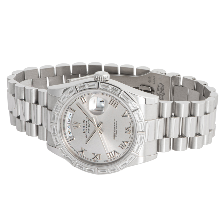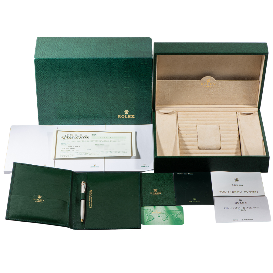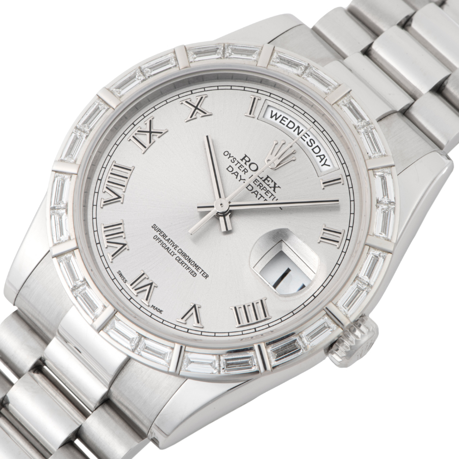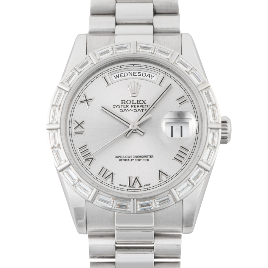 | 商品説明 | ☆グレーローマンダイアルのプラチナ製のデイデイトです。 ベゼルには24個のバケットダイヤがセッティングされ、大変上品なモデルとして存在感を放っています。 更にこちらの時計は購入時から一度も研磨がされていないようで、当時の裏蓋シールが残っており各所のエッジもしっかりとあります。 表示価格は現金価格となります。 通常ローンはご利用いただけます。 |