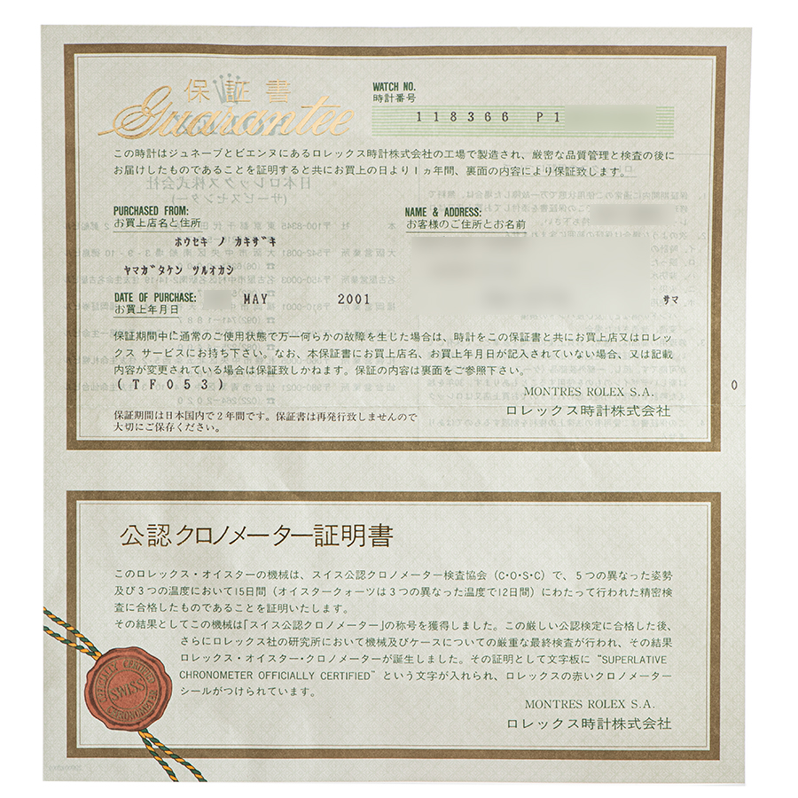 | コンディション | ガラス:欠けやキズはありません 文字盤・針:大変綺麗な状態 ベゼル:薄っすらと線傷がありますが、目立つ傷はなく綺麗な状態 ケース:ラグ部分やサイド部分に使用に伴う擦り傷や線傷があります ブレスレット:使用に伴う擦り傷が全体に薄っすらとありますが、ブレスの伸びは少ないです |