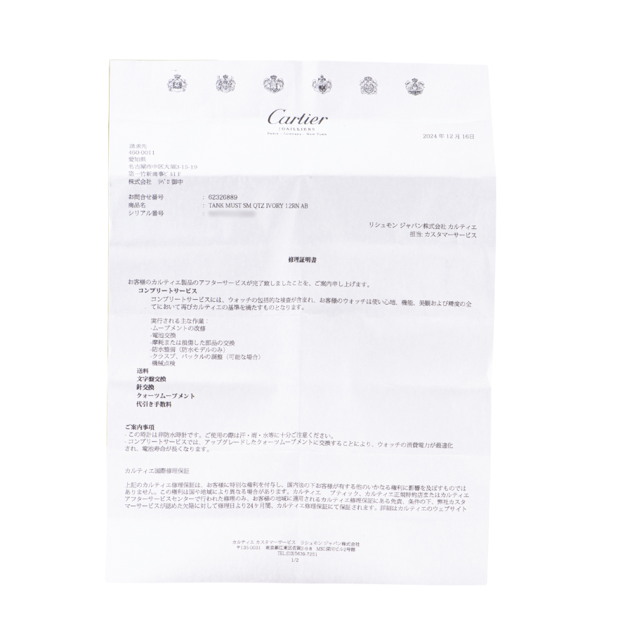 | 付属品 | 修理明細書(2024/12) |