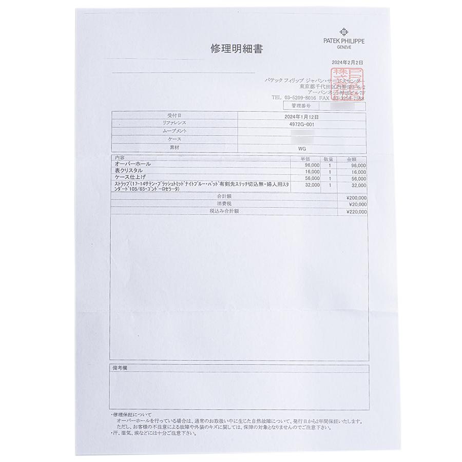 | 付属品 | 修理明細(2024/2) |