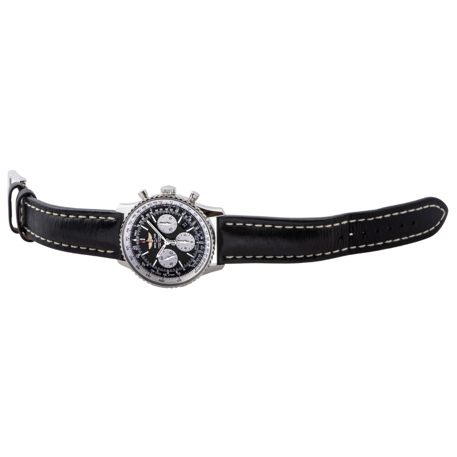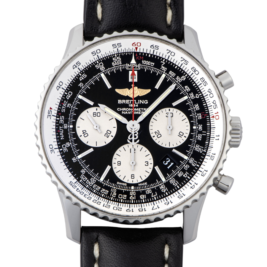 | 商品説明 | ☆自社ムーブメントを搭載したナビタイマー01で人気の黒文字盤の革ベルトモデルです。 |