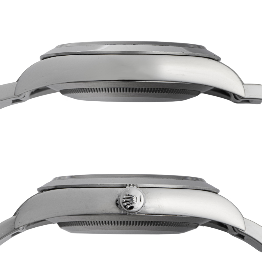 | コンディション | ガラス:欠けはありません 11時位置のほんの小さなガラス傷があるが、肉眼ではわからない程度です 文字盤・針:大変綺麗な状態 ベゼル:ベゼル12時方向に小さな打ち傷、3時方向に擦り傷や小傷の跡が残ります。8時位置角に小さな凹みが御座います。 ケース:10時7時方向のラグの正面に打ち傷、当て傷がポツポツと御座います。その他仕上げで薄くなった小傷が僅かに残るが、目立つ大きな傷などはなく概ね綺麗な状態 ブレスレット:使用に伴う小傷や打ち傷が所々見受けられます ※弊社で研磨仕上げ済み |