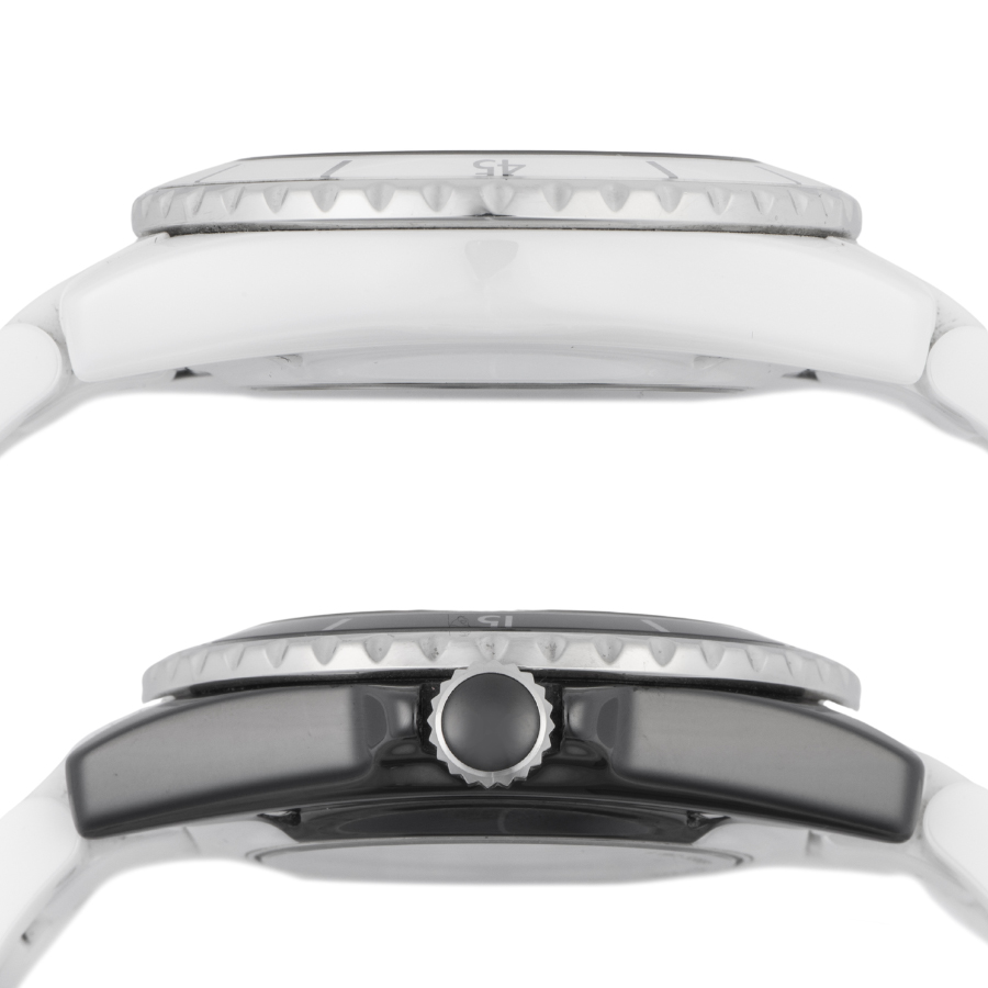 | 商品説明 | ☆初代J12が発表された2000年から20周年となる2020年のメモリアルイヤーに発表されたモデルで、シャネルを象徴する対極カラーのホワイトとブラックの2つのセラミックケースを非常に薄い特殊なブレードで切断した後に繋ぎ合わせるといった高度なテクニックによって作られ、一つのタイムピースに落としこんだ注目すべきクリエイションです。 ※材質がセラミックですので小傷もなく、大変綺麗な状態です。 表示価格は現金価格となります。 通常ローンはご利用いただけます。 |