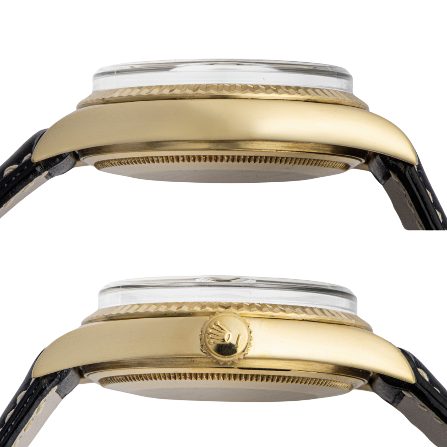 | コンディション | プラ風防:細かな傷は見受けられますが視認性十分に保たれています 文字盤・針:大きな劣化などなく大変綺麗な状態 ベゼル:目立つ大きな傷などはなく綺麗な状態 ケース:微細な拭き傷程度。12時側のラグの正面に小傷や小さな打ち傷があります ストラップ:新品の社外革ベルトに交換済み ※ケース瘦せを考慮して敢えて仕上げは行っておりません。年代を考慮していただければコンディション大きな問題はなく綺麗な状態です。 |