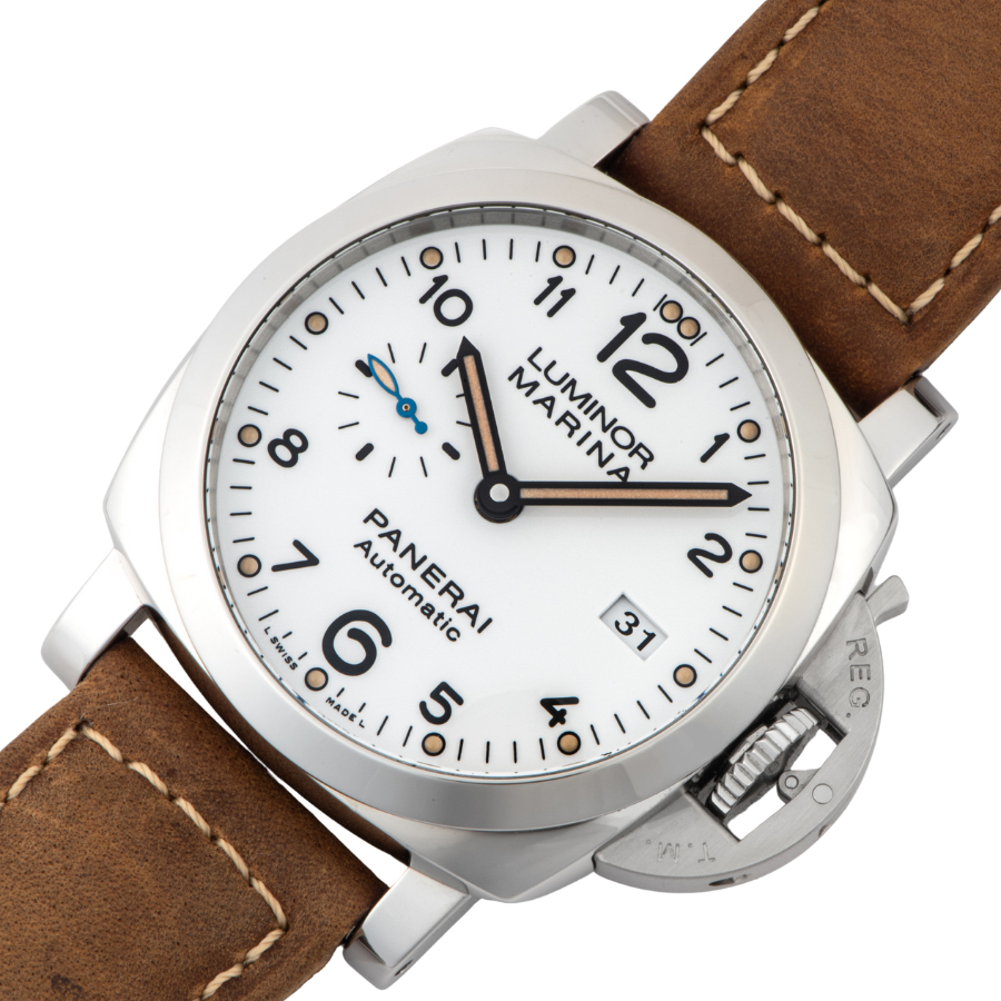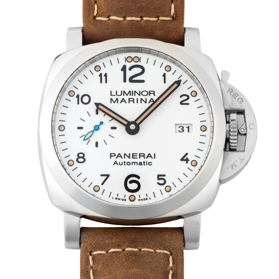 | 商品説明 | ☆こちらはPAM00499の後継機となり、新型のムーヴメントP.9010を搭載し、重さと厚さを今まで以上に抑えることに成功しています。爽やかな白文字盤のドットワークもヴィンテージ感漂うベージュ色の夜光塗料を使用し、スモールセコンドのパネライブルーの針も落ち着いた雰囲気になっています。 表示価格は現金価格となります。 通常ローンはご利用いただけます。 |