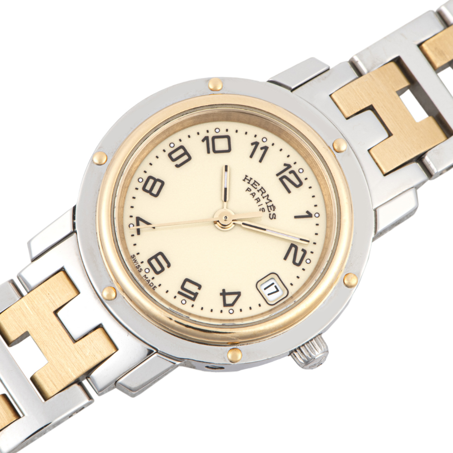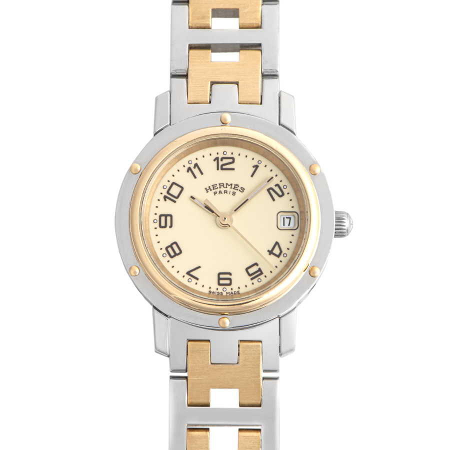 | 商品説明 | ☆エルメス定番モデルのクリッパーです。 19世紀に使用されていた3本のマストの付いた大型快速船の舷窓デザインを原型とし、ベゼルにあしらったビスで忠実に再現しています。 表示価格は現金価格となります。 通常ローンはご利用いただけます。 |