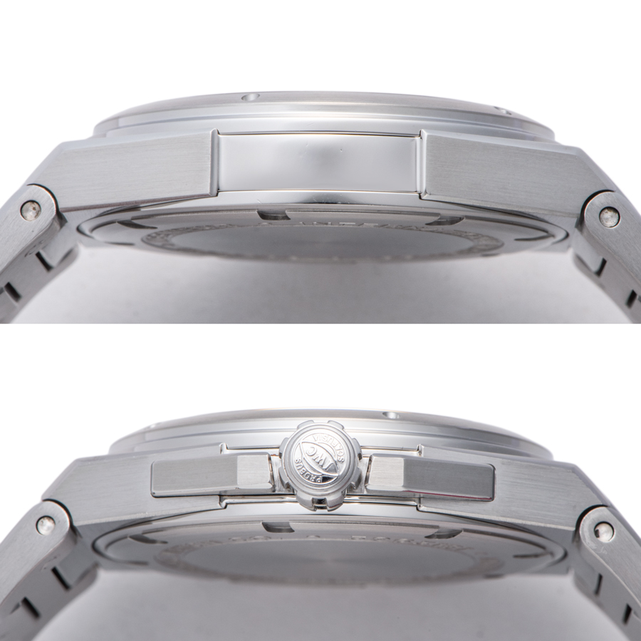 | 商品説明 | ☆新たにリューズガードを備え、40ミリに抑えられたケースは、わずか10ミリの厚みしかないにもかかわらず、耐磁性軟鉄製インターケースにより、「40,000アンペア/m」もの耐磁性能を有しています。 ※外装仕上げ済みで、目立つ大きな傷などなく概ね綺麗な状態です。 ケース本体やブレスに着用時目立たない程度のほんの小さな打ち傷がわずかに残ります。 |