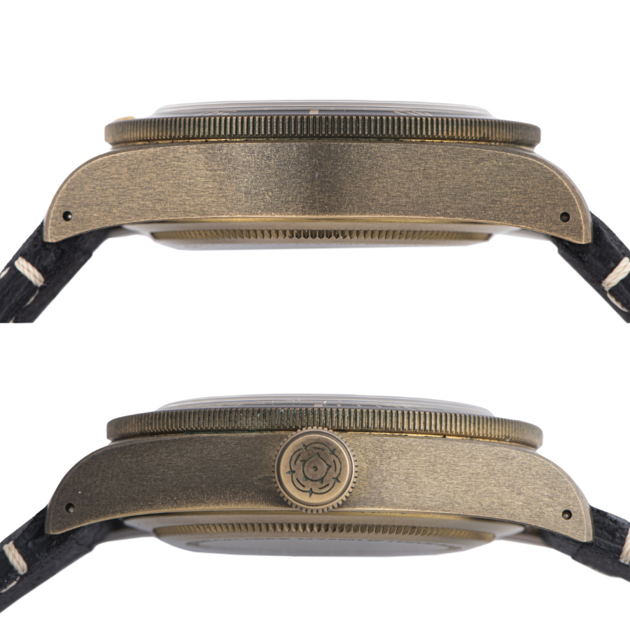 | コンディション | [ガラス]:欠けやキズはなく大変綺麗な状態。 [文字盤、針]:大変綺麗な状態。 [ベゼル]:特筆すべきダメージはなく大変綺麗な状態。 [ケース]:ブロンズ特有の変色がありますが使用傷はなく大変綺麗な状態。 [ベルト]:使用感はなく大変綺麗な状態。 |