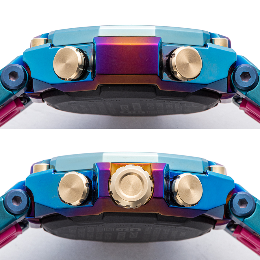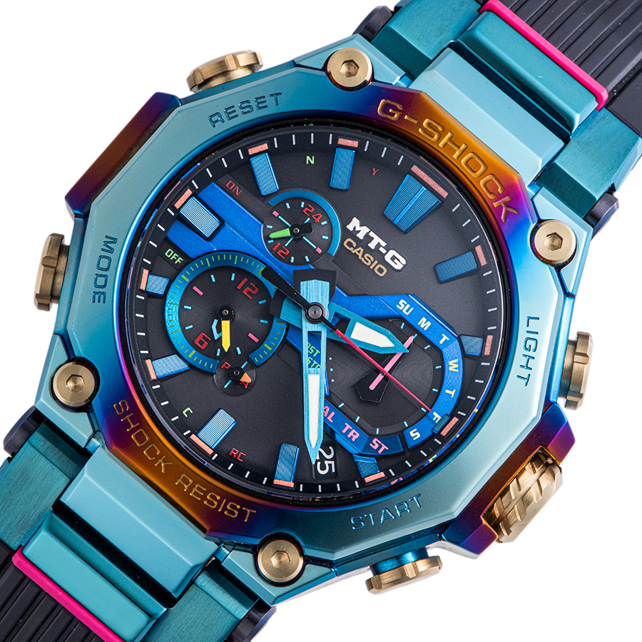 | 商品説明 | ☆カーボン素材を活用したMTG-B2000をベースにし、「ブルーフェニックス」をテーマにデザインされたスペシャルモデルです。 ベゼルとケースの両方にレインボーIPを施し、インパクトあるデザインに仕上げています。 ベゼルには、横向きにグラデーションをかけたレインボーIPを二重に施し、ツートーンの柄を表現しています。 ※展示未使用品 表示価格は現金価格となります。 通常ローンはご利用いただけます。 |