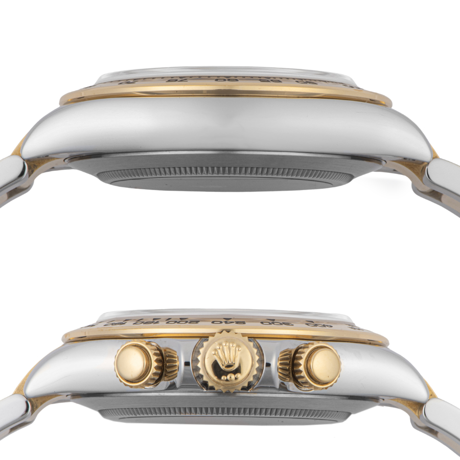 | 商品説明 | ☆2016年に新デザインのタキメーターベゼルを搭載して登場しました。 ベゼルやリューズ、プッシャー、ブレスレットに18Kイエローゴールドを採用した豪華なモデルです。 |