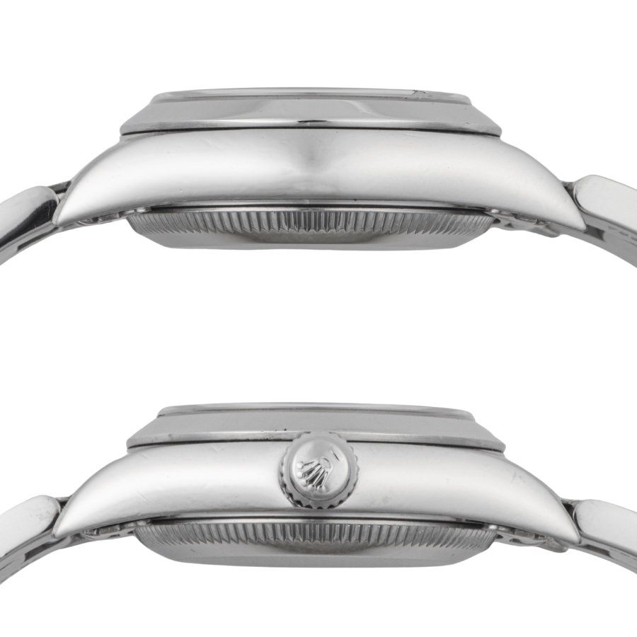 | コンディション | ガラス:8時位置角に爪でなぞると僅かに引っかかる程度の欠けがあります。ガラス面にキズはありません 文字盤・針:大変綺麗な状態 ベゼル:微細な小傷が僅かに残るが、目立つ大きな傷などはなく概ね綺麗な状態 ケース:小さな打痕の跡や微細な小傷跡が薄っすらとケースサイドに残っていますが、目立つ傷などはなく概ね綺麗な状態 ブレスレット:バックル部分に使用に伴う小傷が散見されます。その他僅かに使用傷が残る程度で目立つ大きな傷などはなく概ね綺麗な状態 ※弊社で研磨仕上げ済み |