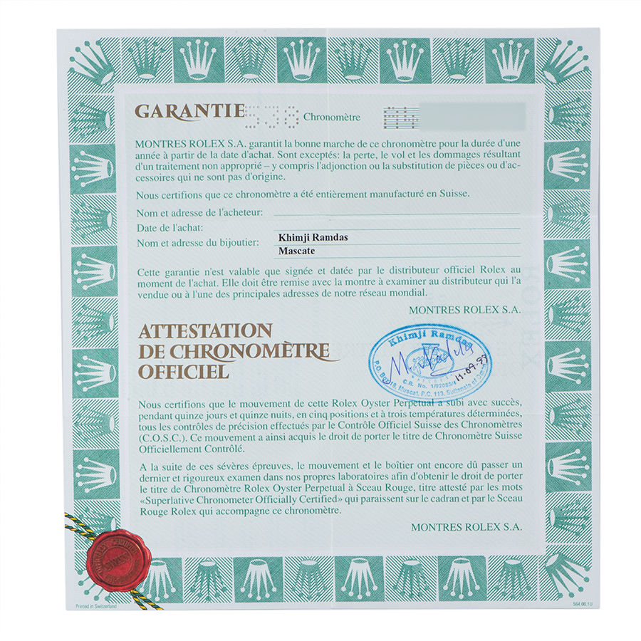 | 商品説明 | ☆希少な裏蓋にオマーンの国章が刻印されたエクスプローラーIが入荷しました。 裏蓋と箱にオマーン国のRoyal Emblemとされている、Khanjar(短剣)と王冠が刻印、印字されている特別仕様です。 オマーン国が褒賞品としてロレックスにオーダーしたもので滅多に市場に出回らない逸品です。 ギャランティーカードには当時こちらのモデルを販売していた正規販売店KHIMJI RAMDASのショップ印がしっかりついております。 ※仕上げで消せる程度の使用に伴う小傷程度はありますが、ケース痩せを考慮して敢えて仕上げは行っておりません。 目立つ大きな傷などはなくコンディションは良好です。 表示価格は現金価格となります。 通常ローンはご利用いただけます。 |