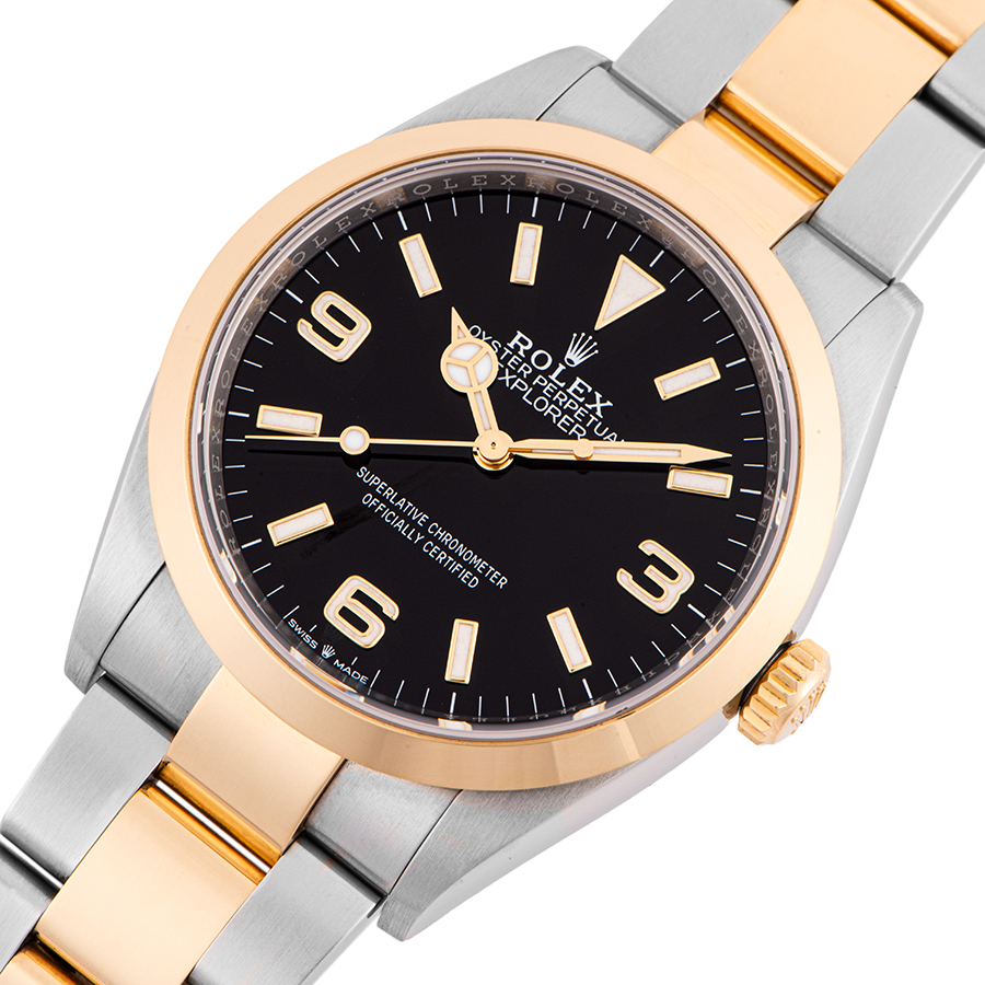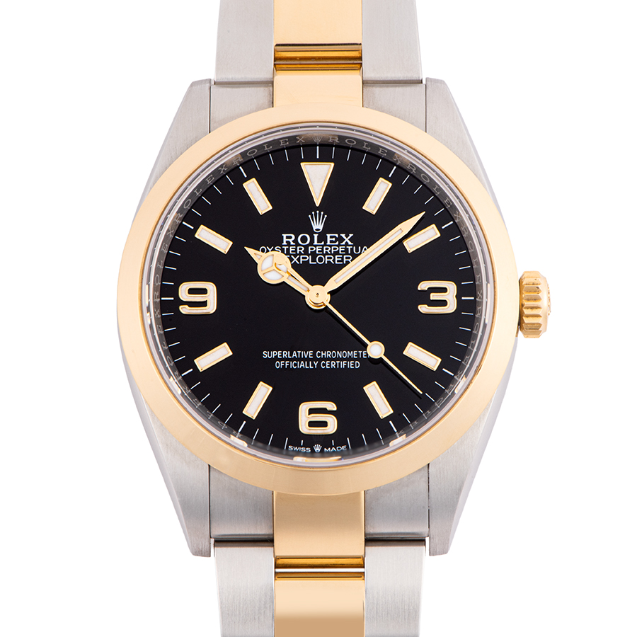| 商品説明 | ☆2021年に発表されたエクスプローラー史上初となるイエローロレゾール(コンビ)の新型モデルです。 39mmから36mmにサイズダウンし、114270のデザインを彷彿とさせます。 cal.3230が搭載され、パワーリザーブは70時間を実現しています。 |