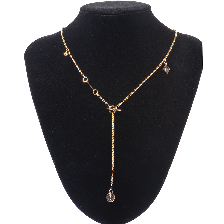 | サイズ | トップW約10mm x H約10mm チェーン長さ:約61.5cm 重さ:約11.08g Hロゴ(H logo)モチーフ:約9mmx14mm バー(bar)モチーフ長さ:約25mm ダイヤモンド 0.11ct |