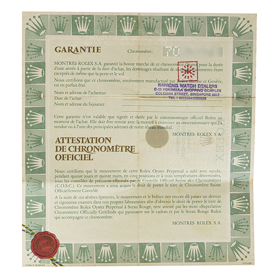 | コンディション | プラ風防:目立つ大きな傷や欠けなどはありません 文字盤・針:インデックス周辺に経年劣化が見られ、長短針に錆が出ています ベゼル:僅かに小傷が残る程度で、概ね綺麗な状態 ケース:薄っすらとした線傷がありますが、目立つ大きな傷などはなく概ね綺麗な状態 ブレスレット:若干の伸びがありますが、目立つ傷はなく概ね綺麗な状態 |