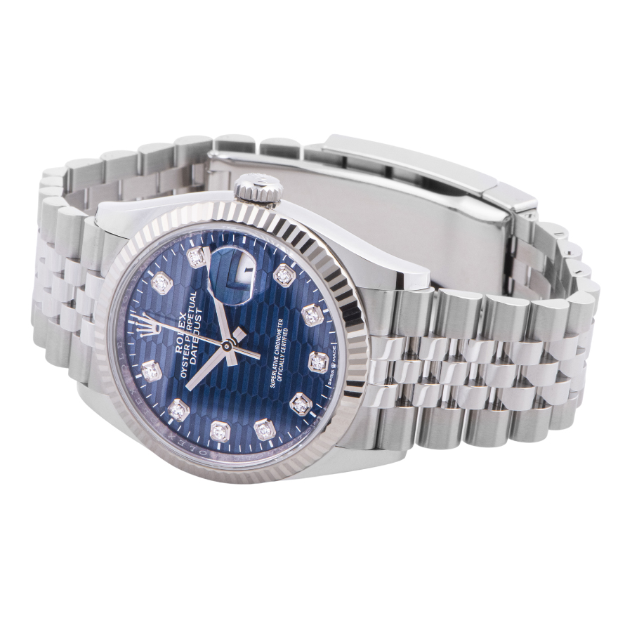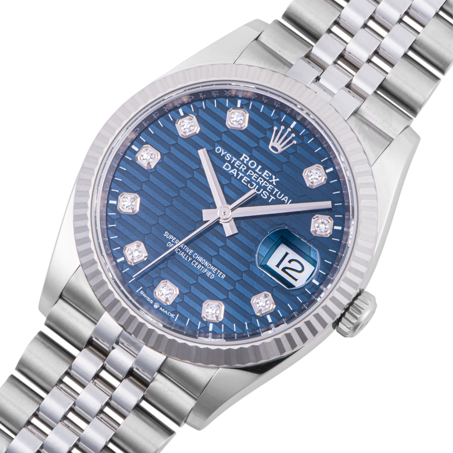 ロレックス デイトジャスト36 126234G ブライトブルー フルーテットモチーフ