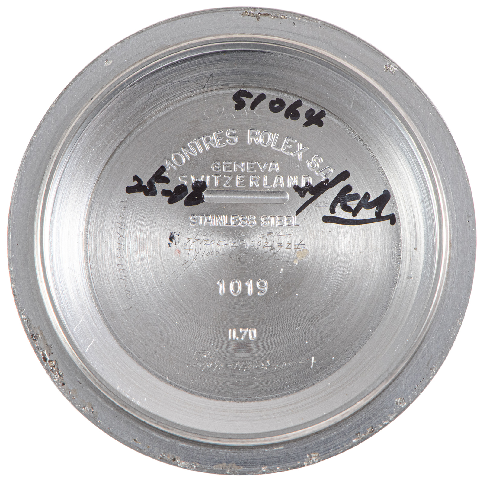 | 商品説明 | ☆初期のヘアライン仕上げとは異なり、シルバーダイヤルはフラットな仕上げとなり、秒針目盛も0.2秒ピッチから0.5秒ピッチになりすっきりとした印象になっています。 又、インデックス夜光もインデックスの一部にそのまま夜光が付いたものから、インデックスの外側にはみ出るように変更されています。 メーカーに複数回メンテナスに出した履歴が残っており、丁寧に使用されていたことがうかがい知れます。 |