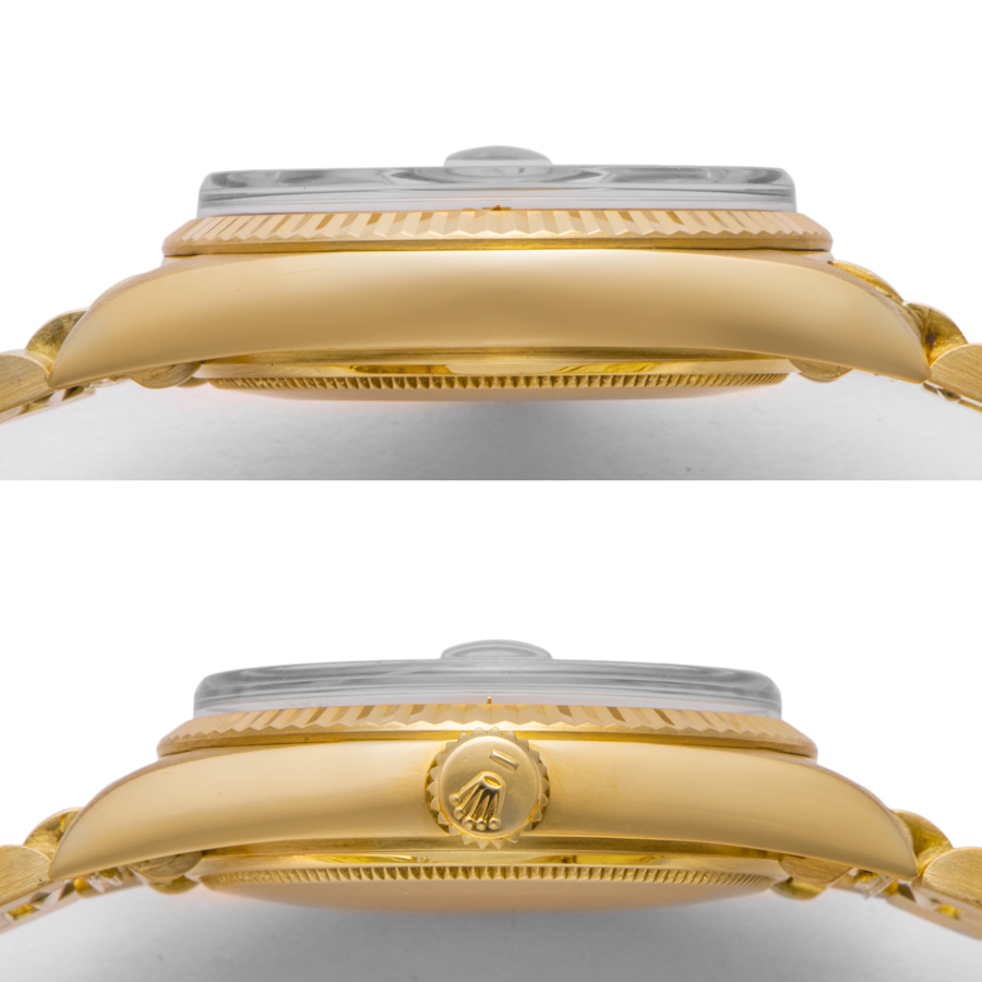 | 商品説明 | ☆ジャパンブレスのK18YG無垢のデイデイトが入荷しました。 ※外装仕上げ済みですが、ブレス鏡面部分に着用時に目立たない程度の小さな打ち傷がございます。 その他には目立つ大きな傷など無く綺麗な状態です。 |