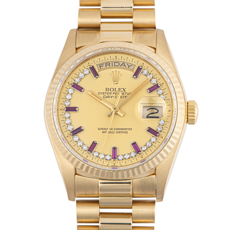 ロレックス デイデイト 18038LR 1986年製 10Pバゲットカットルビー ミリヤードダイアル