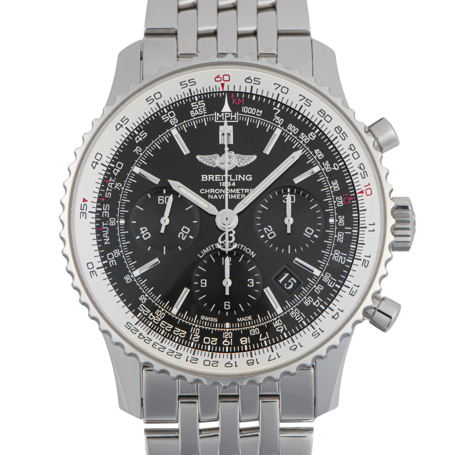 | 商品説明 | ☆ブラックのインダイアルを配した特別仕様の「ナビタイマー01ブラックブラック」。 裏蓋にリミテッド数が刻印された日本400本の限定モデルです。 ※目立つ大きな傷などなく大変綺麗な状態です。 バックルにわずかな微細な拭き傷があります。 表示価格は現金価格となります。 通常ローンはご利用いただけます。 |