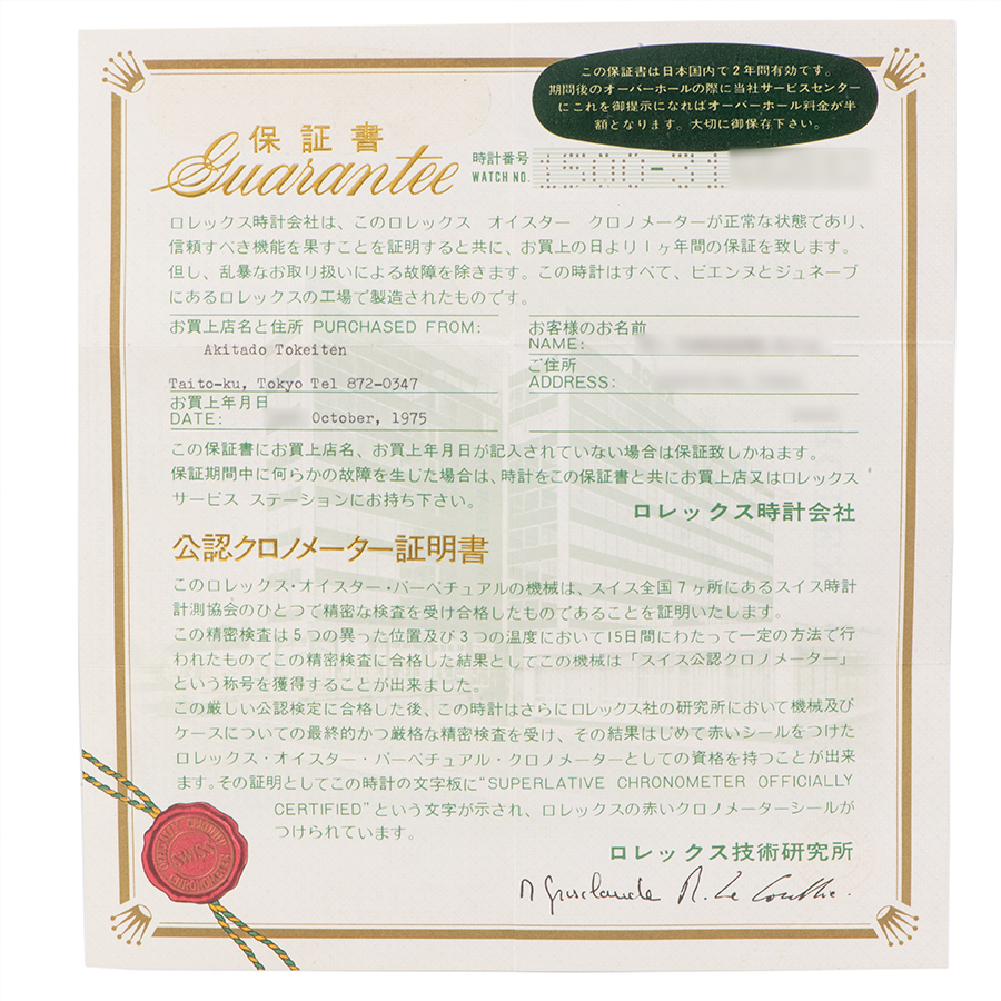 | 商品説明 | ☆シンプルで使いやすいパーペチュアルデイトが入荷致しました。 当時の保証書が残っている珍しい個体です。 ※外装仕上げ済みで、目立つ大きな傷などなく綺麗な状態です。 ブレスに若干小傷が残ります。 表示価格は現金価格となります。 通常ローンはご利用いただけます。 |