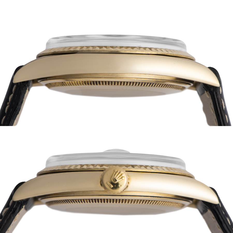| 商品説明 | ☆年代が古く希少性が高いデイトジャストのイエローゴールド無垢のアンティークモデルが入荷致しました。 ※外装仕上げ済みで、目立つ大きな傷などなく大変綺麗な状態です。 ケース本体裏側のフラッシュフィットが当たっていたところに数か所傷が残ります。 長短針に経年変化によるクスミがあります。 ペラン社製の新品革ベルトに交換済みです。 表示価格は現金価格となります。 通常ローンはご利用いただけます。 |