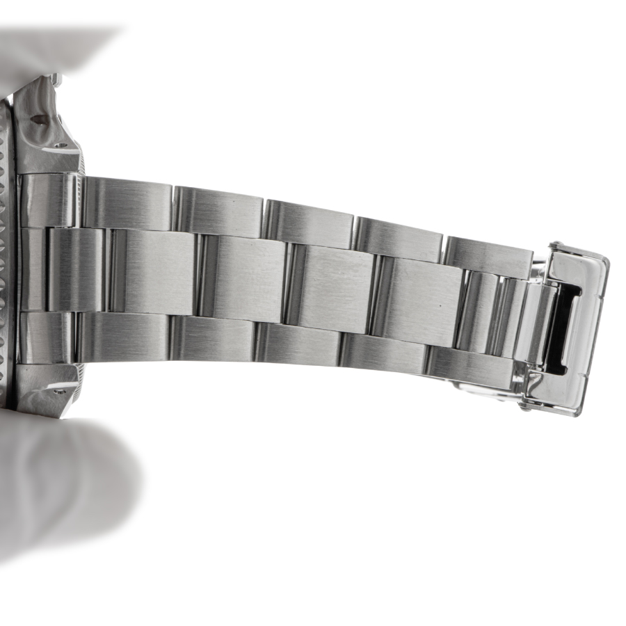 | コンディション | ガラス:欠けやキズはありません 文字盤・針:大変綺麗な状態 ベゼル:11時位置に薄っすらと傷がありますが、その他は大変綺麗な状態 ケース:サイド部分にポツポツと打ち傷跡が薄っすらと残りますが概ね綺麗な状態 ブレスレット:微細な小傷がわずかに残りますが、伸びは少なく概ね綺麗な状態 ※弊社にて研磨仕上げ済み |