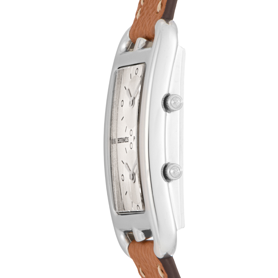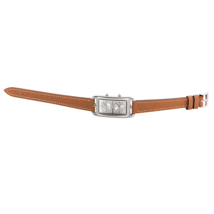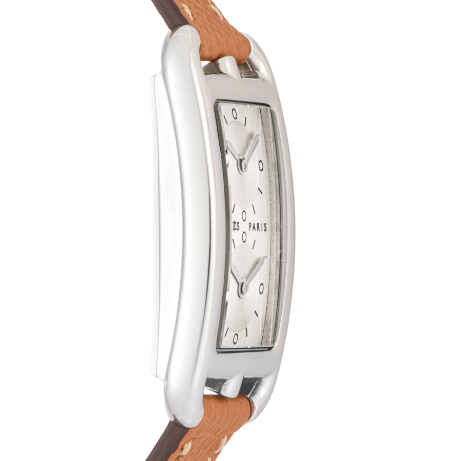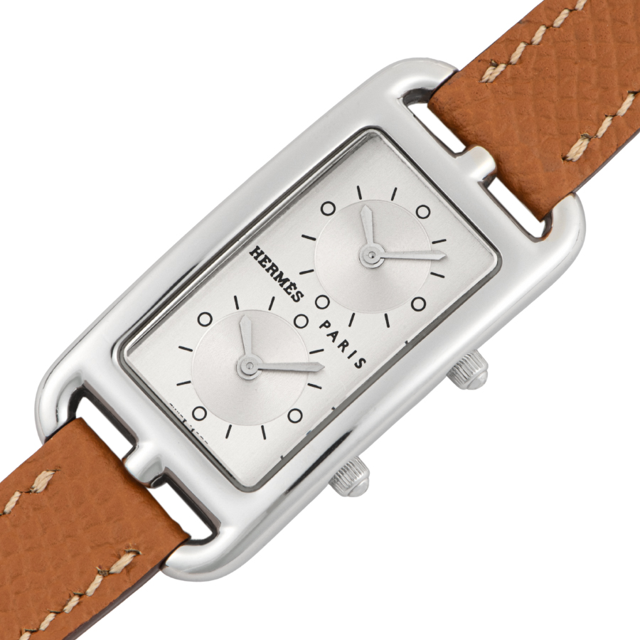 | 商品説明 | ☆エルメスの名作ジュエリー「シェーヌ・ダンクル」にインスパイアされた、アンリ・ドリニーによるデザインが光るケープコッド。長方形に正方形を重ねた独特のフォルムに、柔らかな曲線が融合し、気品とフェミニティを感じさせる一本です。 このモデルは、縦長ケースに2タイムゾーン表示を備えた「ドゥゾーン」仕様。2つのムーブメントが独立して時を刻み、旅先でもスタイリッシュに時を操ることができます。シルバーダイヤルにギョーシェ彫りが施されたインダイアルが美しい陰影を生み出し、知性と上品さを併せ持つ洗練された表情に仕上がっています。 表示価格は現金価格となります。 通常ローンはご利用いただけます。 |