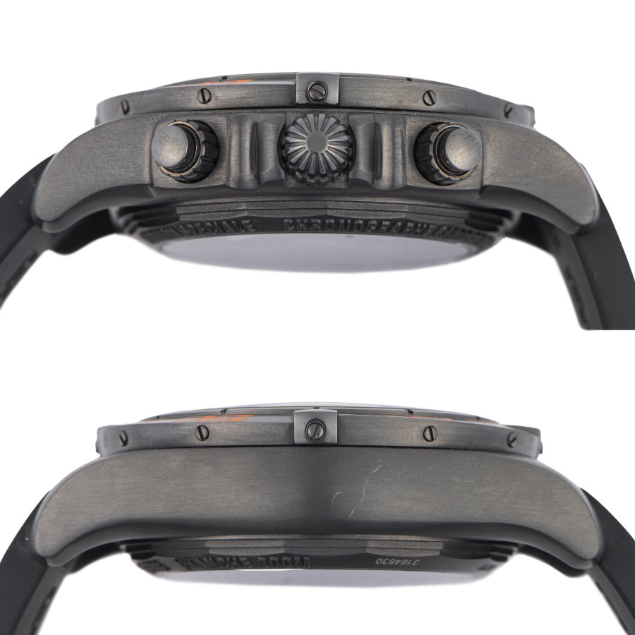 | 商品説明 | ☆モデル名のレイブンは神話や伝説にも多く登場するワタリガラスが由来となっており、その名の示す通り力強く逞しいDLC加工のブラックが特長的です。タキメーターやスモールセコンドなどの鮮やかなオレンジがアクティブな印象を与えてくれます。 ※11時位置のラグに1箇所小さな打ち傷があり、ケースサイド9時位置に僅かに薄っすら線傷があります。 その他は目立つ大きな傷などはなく概ね綺麗な状態です。 ラバーベルトは多少の使用感はありますがまだまだお使いいただけます。 表示価格は現金価格となります。 通常ローンはご利用いただけます。 |