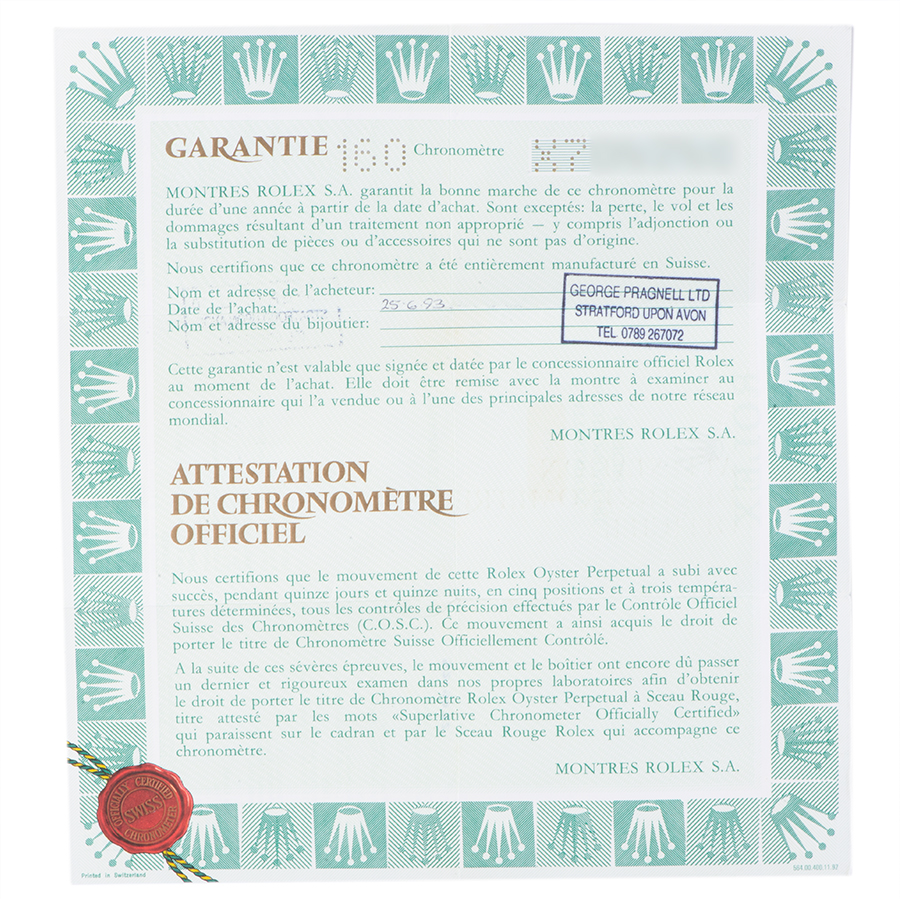 | 商品説明 | ☆トリチウム夜光、シングルバックル、ケースサイドに空けられた穴、現行モデルに比べ秒針のドット部分が先端に配置されている通称「Tip dot second hand」などの特徴があり、4桁リファレンスの「ヴィンテージロレックス」に似たアンティーク感を持ったモデルです。 ※ベゼルに着用時目立たない程度の微細な小傷が見受けられます。 ガラス風防の角を爪でなぞるとわずかにザラっと引っかかる程度のガラス欠けがありますが、肉眼では見えない程度です。 外装仕上げ済みで、その他目立つ大きな傷や致命的なダメージはなく概ね綺麗な状態です。 表示価格は現金価格となります。 通常ローンはご利用いただけます。 |