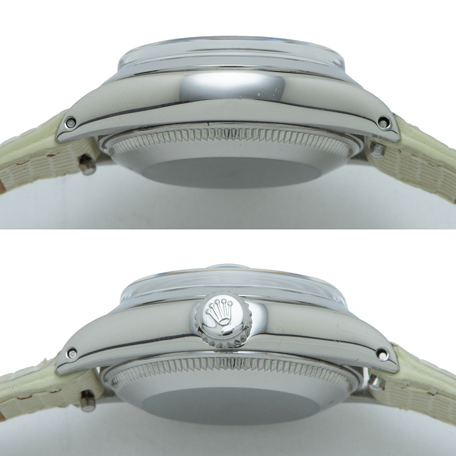 | 商品説明 | ☆グレーダイアルのレディース ロレックスが入荷致しました。 風防はプラスチック風防で現行モデルでは味わえないアンティークの雰囲気をお楽しめるいただけるモデルです。 ※外装仕上げ済みですが、ケースサイド10時位置に目立たない程度の小さな小傷が残ります。 針に若干のクスミが見受けられますが、年式を考慮して頂ければコンディションに大きな問題はございません。 ★ベルト一覧の画像から3種類お好きな色を選択頂けます。 シーンに合わせてお好きな色に付け替え頂けます。 表示価格は現金価格となります。 通常ローンはご利用いただけます。 |