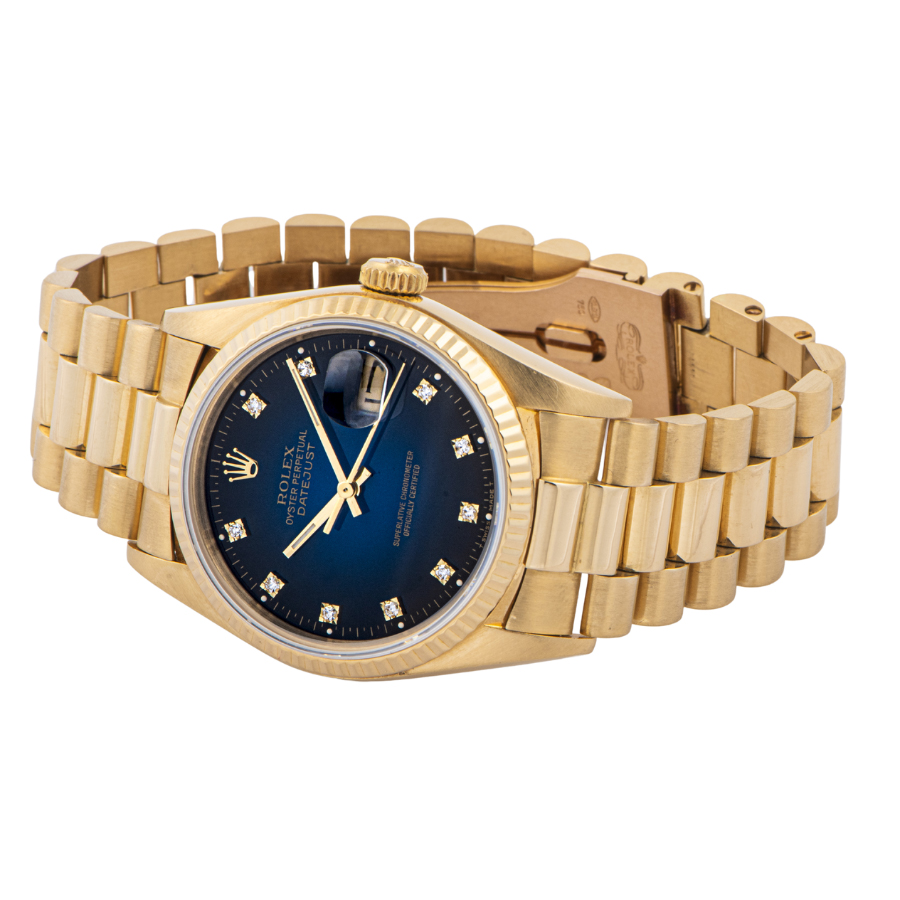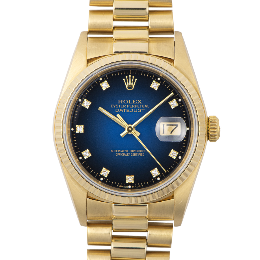 | 商品説明 | ☆K18YG無垢モデルでずっしりとした重量感のある、ロレックス最高峰のドレス系モデルです。 綺麗なブルーグラデーションダイヤルに10ポイントダイヤをセッティングした華やかなモデルです。 ※仕上げで消せる程度の微細な使用傷がケースサイドやブレスレットの鏡面仕上げ部分にあります。 ケース瘦せを考慮して敢えて仕上げは行っておりません。 ブレスに若干の伸びがありますが、年代を考慮して頂ければコンディション大きな問題はございません。 その他目立つ大きな傷などなく概ね綺麗な状態です。 表示価格は現金価格となります。 通常ローンはご利用いただけます。 |