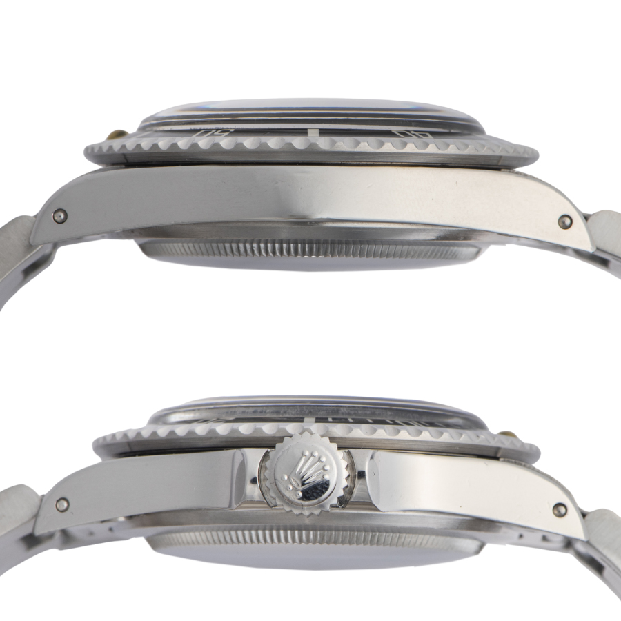 | コンディション | [ガラス]:目立つ傷やカケはなく大変綺麗な状態。 [文字盤、針]:スパイダーダイアルのような経年劣化によるひび割れやプツプツが見受けられます。 針に経年劣化によるサビやクスミが全体にあります。分針の夜光にひび割れがあります。 針とダイアルはトリチウム夜光です。 [ベゼル]:6時・9時方向に小さな小傷がありますが大きな傷はなく綺麗な状態。ルミナスポイントは後塗りで補修されています。 [ケース]:小さな打ち傷や小傷が残りますが、目立つ傷などなく概ね綺麗な状態。 [ブレスレット]:微細なキズが残りますが、着用時は目立たない程度。 目立つ大きな傷や致命的なダメージなどなく概ね綺麗な状態です。 年代を考慮していただければコンディションに大きな問題は御座いません。 |