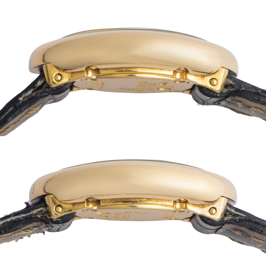 | 商品説明 | ☆人気モデルミニベニュワールのイエローゴールドモデルです。 今までのベニュワールと比べ、なめらかなフォルムでスッキリした印象を与えます。 ※外装仕上げ済みですがベゼル12時方向に着用時目立たない程度の小さな小傷が僅かに残ります。 微細な拭き傷程度はありますが、目立つ大きな傷などなく大変綺麗な状態です。 純正革ベルトの若干の使用感があり、サイドに剥がれや裏面に若干の黒ズミや使用に伴う折ジワが御座います。 表示価格は現金価格となります。 通常ローンはご利用いただけます。 |