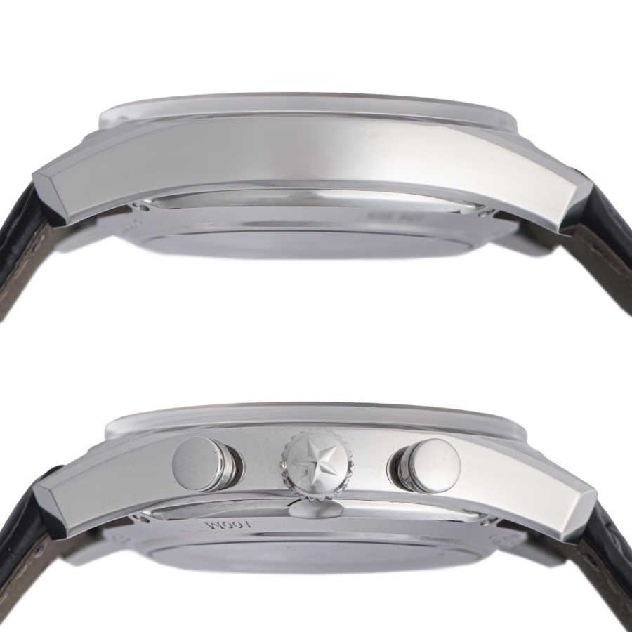 | コンディション | ガラス:欠けやキズはありません 文字盤、針:大変綺麗な状態 ベゼル:6時側角に小さな打ち傷があります。その他目立つ大きな傷はなく大変綺麗な状態 ケース:微細な拭き傷程度はあるが大変綺麗な状態 ストラップ:新品の社外革ベルトに交換済み ※弊社で研磨仕上げ済み |