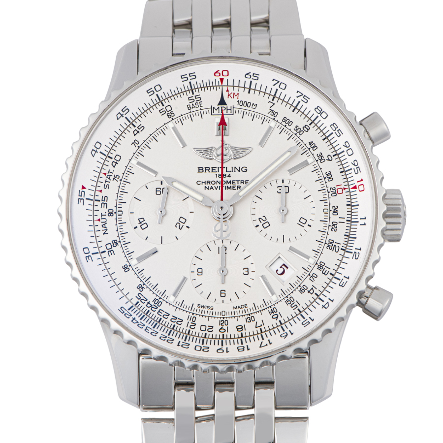 | 商品説明 | ☆自社開発ムーブメント、キャリパー01を搭載した「ナビタイマー01」のリミテッドモデルです。 レギュラーモデルではラインナップされなかったシルバーのダイヤルを採用しておりそれに合わせて12時位置のエンブレムの色が変更され、デイト表示も黒地から白地になっています。 ※外装仕上げ済みで特筆すべきダメージはなく大変綺麗な状態です。 表示価格は現金価格となります。 通常ローンはご利用いただけます。 |