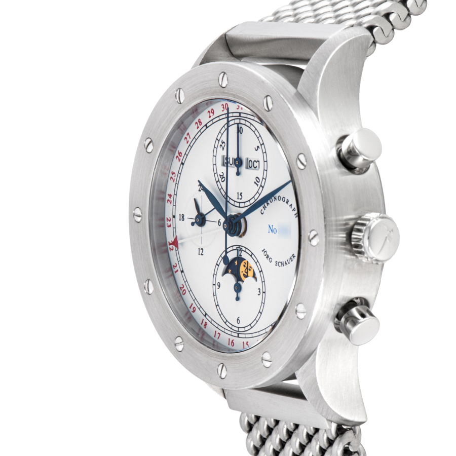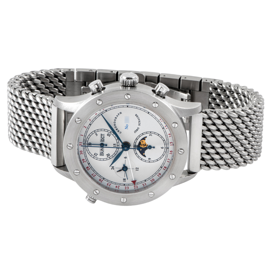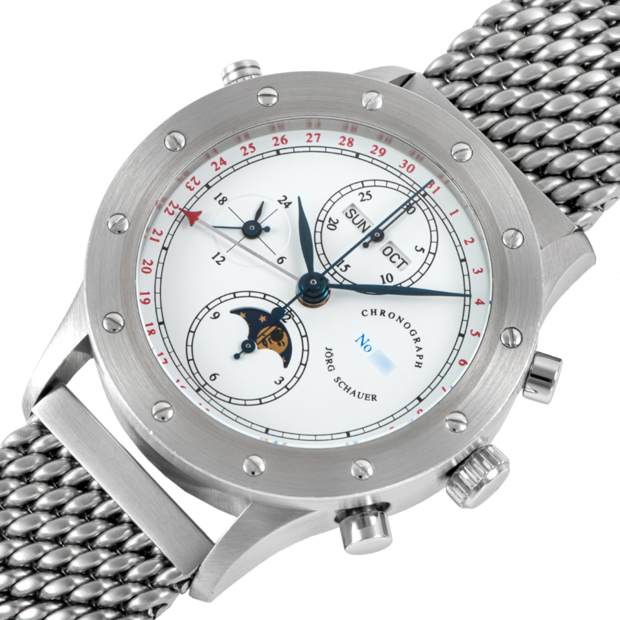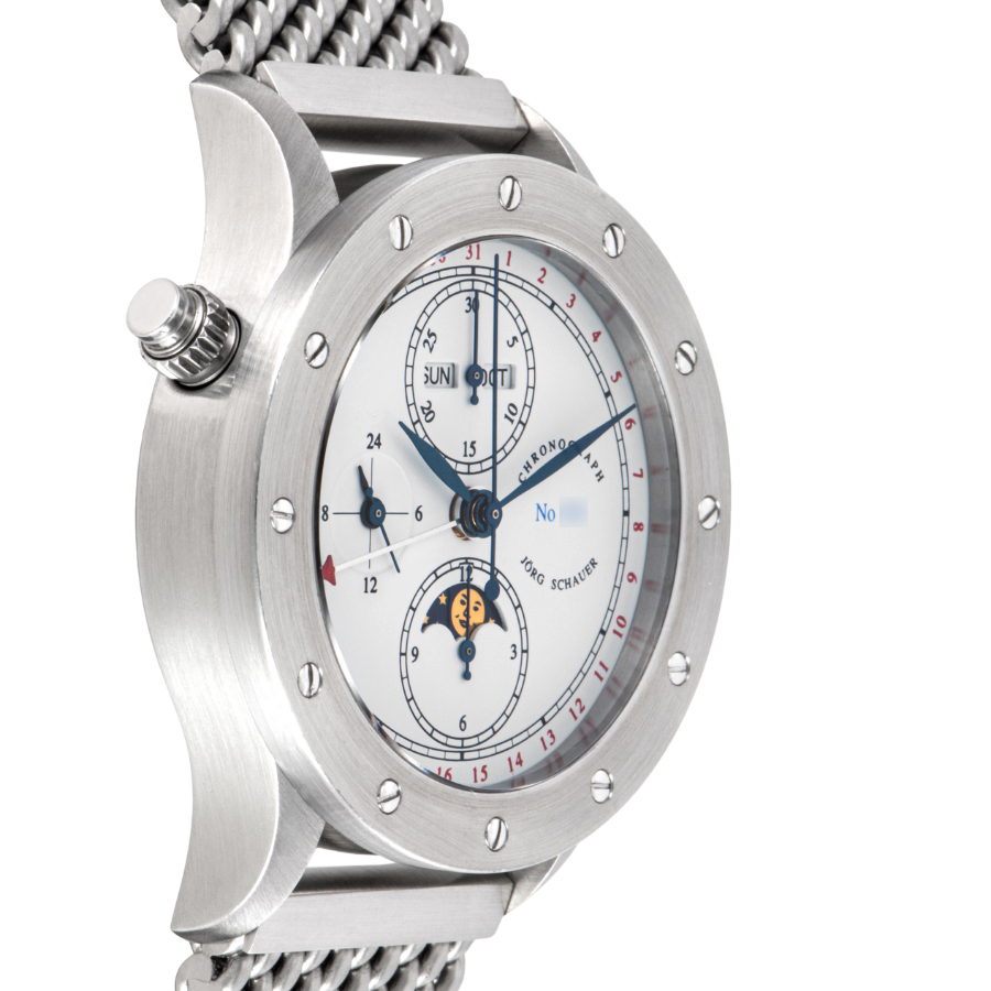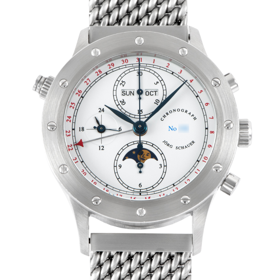 | 商品説明 | ☆ドイツの独立時計師「ヨルク・シャウアー」による希少な限定モデル「エディション9」。 「曜日・日付・月表示」「ムーンフェイズ」「24時間表示」「クロノグラフ機能」を備えた多機能仕様。 機械式らしい重厚な操作感と、ドイツ時計らしい無骨な造形美が共存しています。 |