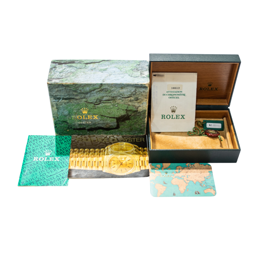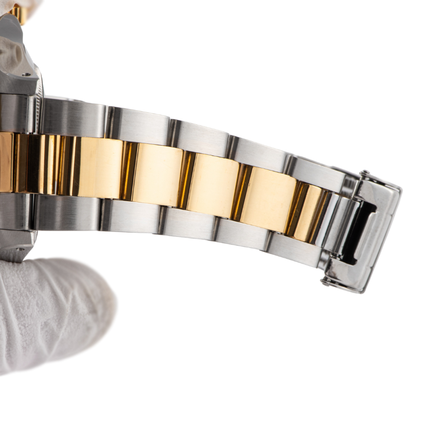 | コンディション | ガラス:サイクロプスレンズに小傷が見受けられます 文字盤・針:大変綺麗な状態 ベゼル:微細な小傷が見受けられますが、概ね綺麗な状態 ケース:サイドに線傷、上部ラグ付近に打ち傷が見受けられますが、概ね綺麗な状態 ブレスレット:YG部分に微細な線傷、バックルに打ち傷が見受けられます ※弊社で研磨仕上げ済み |