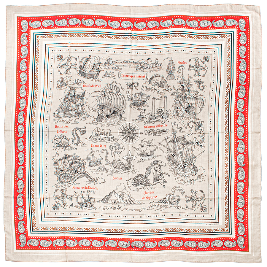 エルメス カレジェアン Tatouages Marins Bandana 船乗りのタトゥ-・バンダナ 243374S 06 スカーフ カレ140 2024SS