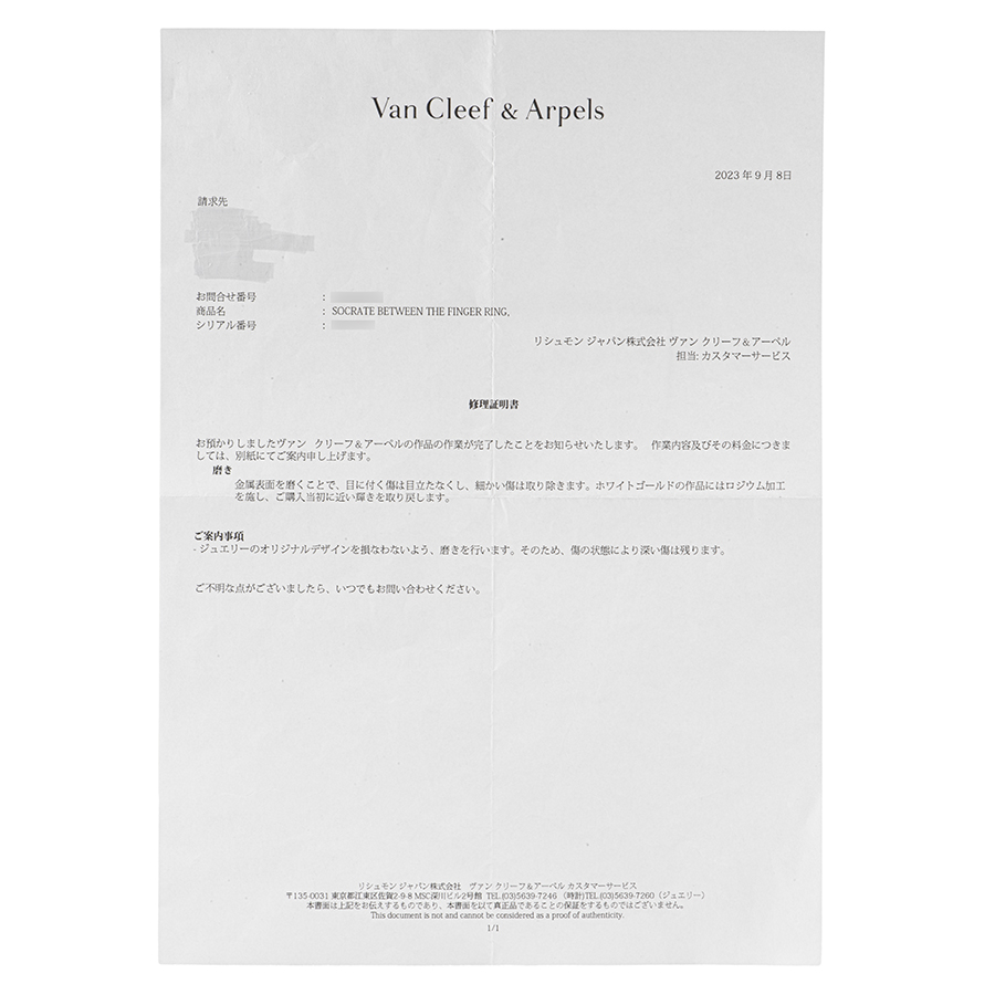 | 付属品 | 修理証明書(2023/9) / (certificate of repair) |